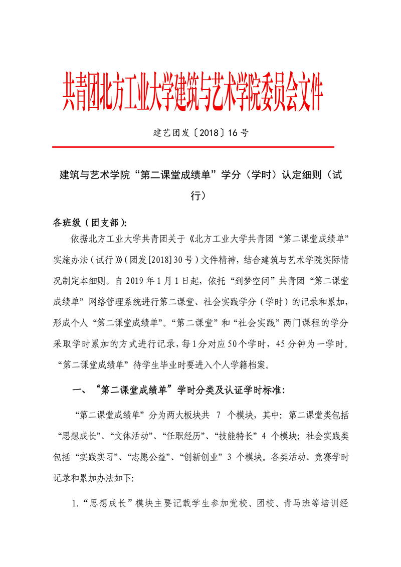 建艺团发〔2018〕16号--WilliamHill中文官网入口“第二课堂成绩单”学分(学时)认定细则(试行)
