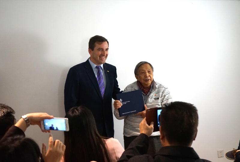 Cheung Koon Yim教授(右)与乌拉圭驻华大使在活动现场