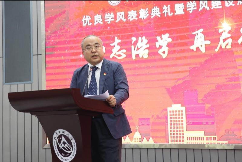 经理贾东老师以《我对学风的认识:从我做起,从现在做起》为题,从公司、员工、教师三个层面分析了加强学风建设工作的重要性,希望教师们不断加强自我修养,推动教风与学风共建;希望同学们珍惜韶华、严于律己、加强知识积累,积极践行优良学风;希望师生党员和各党支部当先锋、做表率,成为教风与学风建设的坚强堡垒。