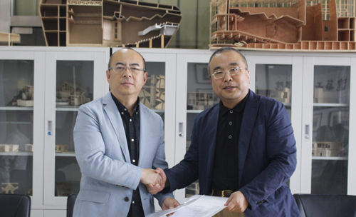朱小地董事长在WilliamHill中文官网入口经理贾东陪同下参观了WilliamHill中文官网入口教学设施,双方签署了实践实习教学基地合作协议书。朱小地董事长随后为公司师生作了题为《观念——当代建筑的形式》的学术报告,并与师生进行交流。