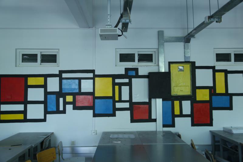 公司领导高度重视专业教室建设,多次强调加强专教建设、营造良好学习环境对学风建设的重要作用。同学们积极参与专教建设,从颜料、画板等工具的选择到空间设计全部由同学牵头负责,激发创作思维,发挥专业优势,在专教建设过程中相互学习、共同切磋。建筑学专业同学以世界知名建筑设计师头像及代表作为背景,设计内容生动有趣;城乡规划学专业同学将北京知名建筑浓缩设计,将现代建筑与古代宫殿的不同风格完美融合;视觉传达专业同学用荷兰艺术家彼埃·蒙德里安的代表作几何抽象图式布置教室,感受设计师的灵感力量。经过一个月的集中建设,专业教室条理整洁、座列井然,为专业课堂教学和课后学习创造了良好的硬件条件。