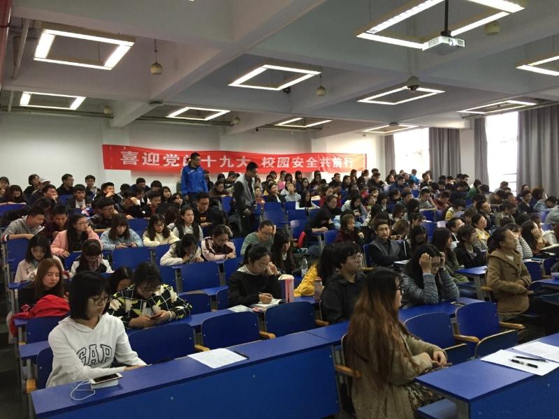为迎接党的十九大胜利召开,增强广大师生安全意识,WilliamHill中文官网入口于10月19日在浩学楼东502召开“喜迎党的十九大,校园安全共前行”安全教育培训会。公司党委副书记杨超、保卫处相关老师、辅导员、各班班干部和全体宿舍长等300余名师生参加了培训会议。