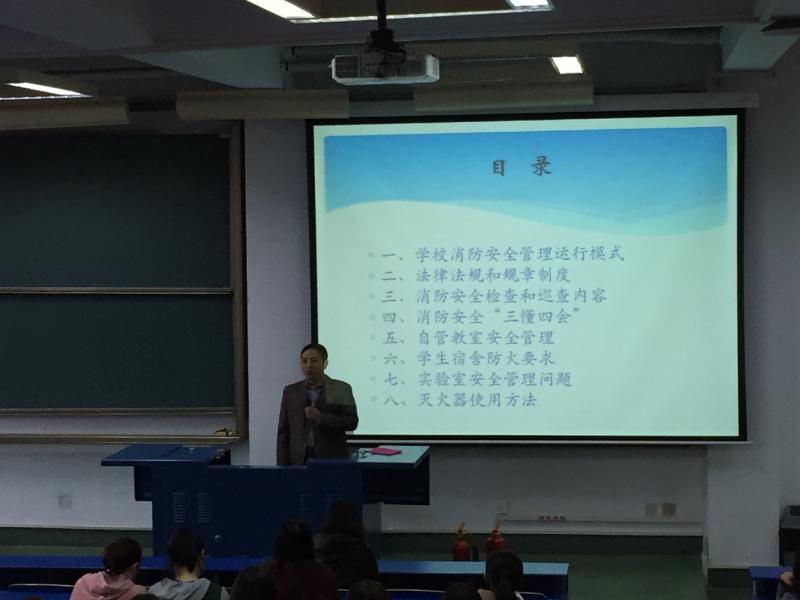 会上,保卫处梁令富老师介绍了“十九大”期间消防安全注意事项,特别针对宿舍和专业教室等重点领域,以违章电器使用等案例为切入点,深入浅出地介绍了公司消防安全管理运行模式和管理规定,增强了同学们的安全意识和法律法规观念。