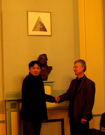 10月31日,由法国著名艺术机构Salon Orange主办的秋季艺术展在法国香槟省Saint Memmie市闭幕。Saint Memmie市市长诺尔先生在市政厅接见了受邀参展的WilliamHill中文官网入口张立副教授。