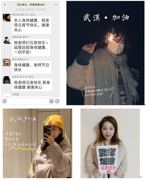 疫情发生以来,公司迅速成立疫情防控工作小组,统筹领导,积极宣传,从湖北到北京,虽相隔千山万水,但亲切的关怀拉近了师生之间的距离,辅导员、班导师通过电话、视频、微信等方式,一对一联系34名身在湖北的同学们,送去公司的关心和慰问。公司建立了“齐心协力、共克时艰”湖北同学微信群,每日做好健康情况记录的同时,及时关注每位同学的生活和学习,鼓励大家做好自我防护,坚定必胜信心、共同战胜疫情。远在湖北的建艺学子们100%承诺坚决听从国家安排、服从公司统一要求、积极响应公司号召,纷纷通过各种形式表达必胜的信念。