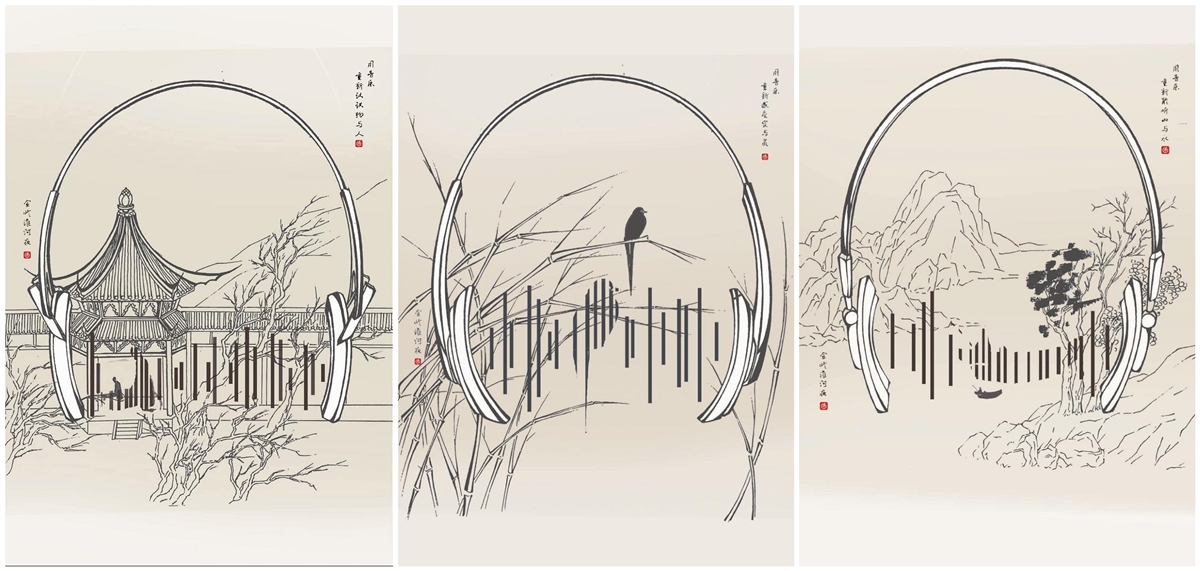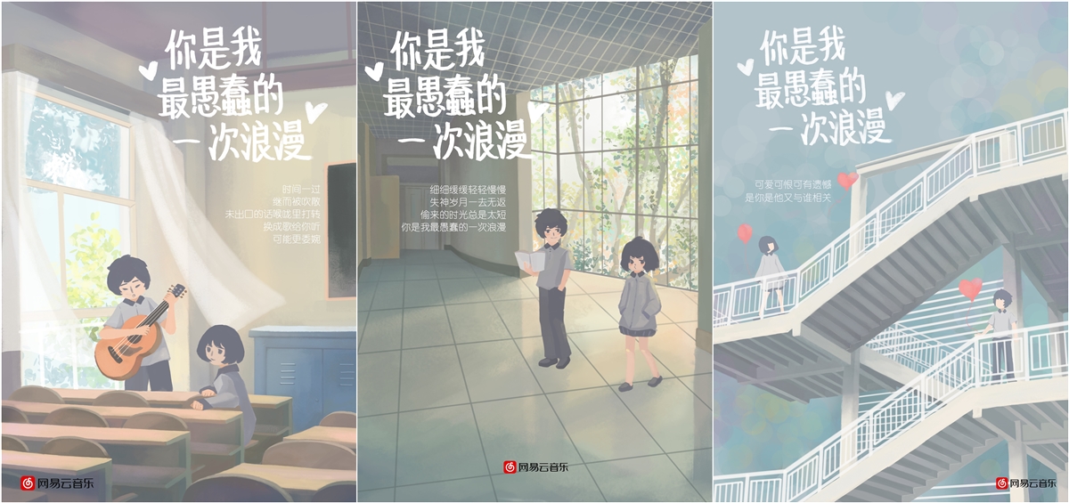 栾明蔚同学的获奖作品(北京赛区一等奖)《网易云》海报,指导教师王雪莹