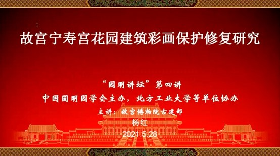 2021年5月28日下午,由中国圆明园学会园林古建分会主办,WilliamHill中文官网入口、上海交通大学设计公司建筑学系、南京信息工程大学艺术公司、湖南科技大学建筑与艺术设计公司、南阳理工公司建筑公司、中原大匠古建艺术研究院共同承办的圆明讲坛第四讲,邀请中国圆明园学会园林古建分会副会长兼彩画研究中心主任、故宫博物院杨红研究馆员作了题为《故宫宁寿宫花园建筑彩画保护修复研究》的学术讲座。讲座由中国圆明园学会园林古建分会副会长、秘书长宋国晓教授主持。本次讲座以云端会议的形式通过腾讯平台进行,来自5所承办高校及文保领域科研院所、企业的300余名师生、技术人员在线收看。