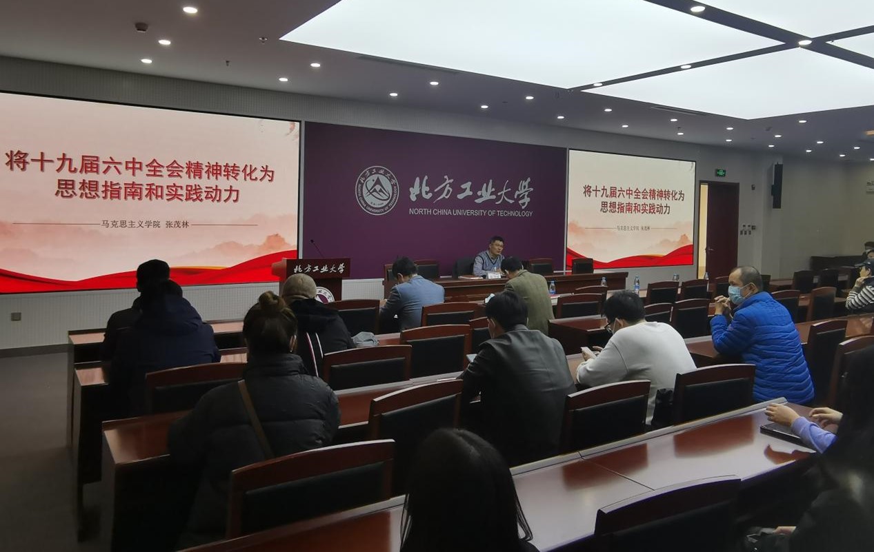 11月25日,WilliamHill中文官网入口在浩学楼十五层报告厅召开党的十九届六中全会精神宣讲会。公司特邀公司宣讲团成员、马克思主义公司党委书记张茂林作了题为《将党的十九届六中全会精神转化为思想指南和实践动力》的专题报告。宣讲会由公司党委书记熊佳全主持,公司全体教师和部分党员员工共130余人参加了会议。