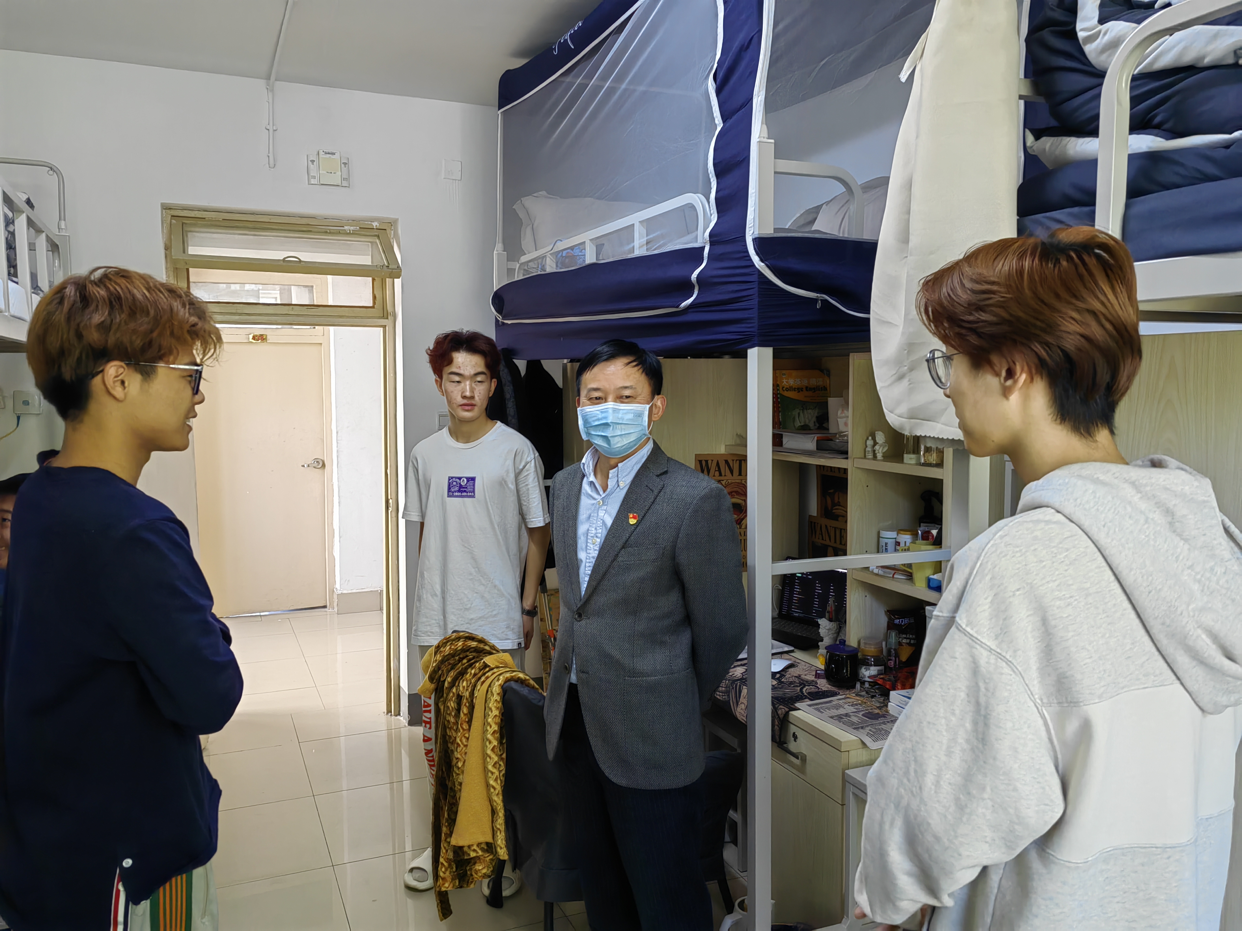 在走访中,公司领导和老师们每到一处,首先向员工们表达了公司的关心与问候。“毕业论文写得怎么样了?”“有去操场运动吗?”“今天的核酸检测完成了吗?”“在学习、生活上有没有什么困难?”在走访宿舍的过程中,公司领导、班导师、辅导员与同学们亲切交谈并指导新生积极适应疫情时期的校园生活,指导毕业生选择考研公司和树立就业求职目标。