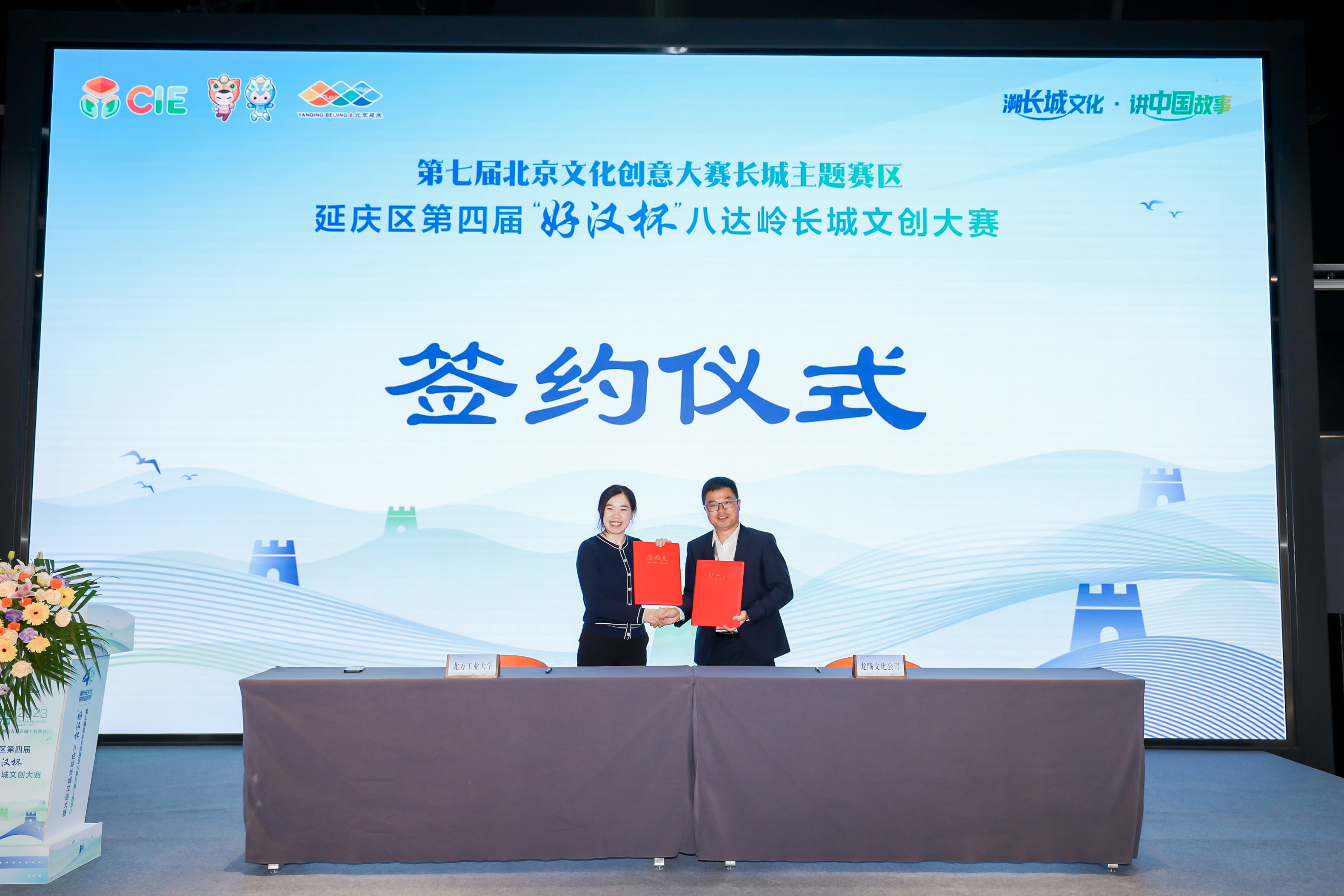 八达岭长城文创大赛作为长城文化带建设首个主题赛区活动,已成为地区重要的品牌活动。团队指导教师农丽媚博士代表公司与八达岭文旅集团签订合作协议,并且在未来公司将就长城保护与传播、文化和旅游融合高质量发展等,与八达岭文旅集团开展全方位的合作。实现教学与生产相结合,达到校企双方互相支持、优势互补、资源互用、利益共享。
