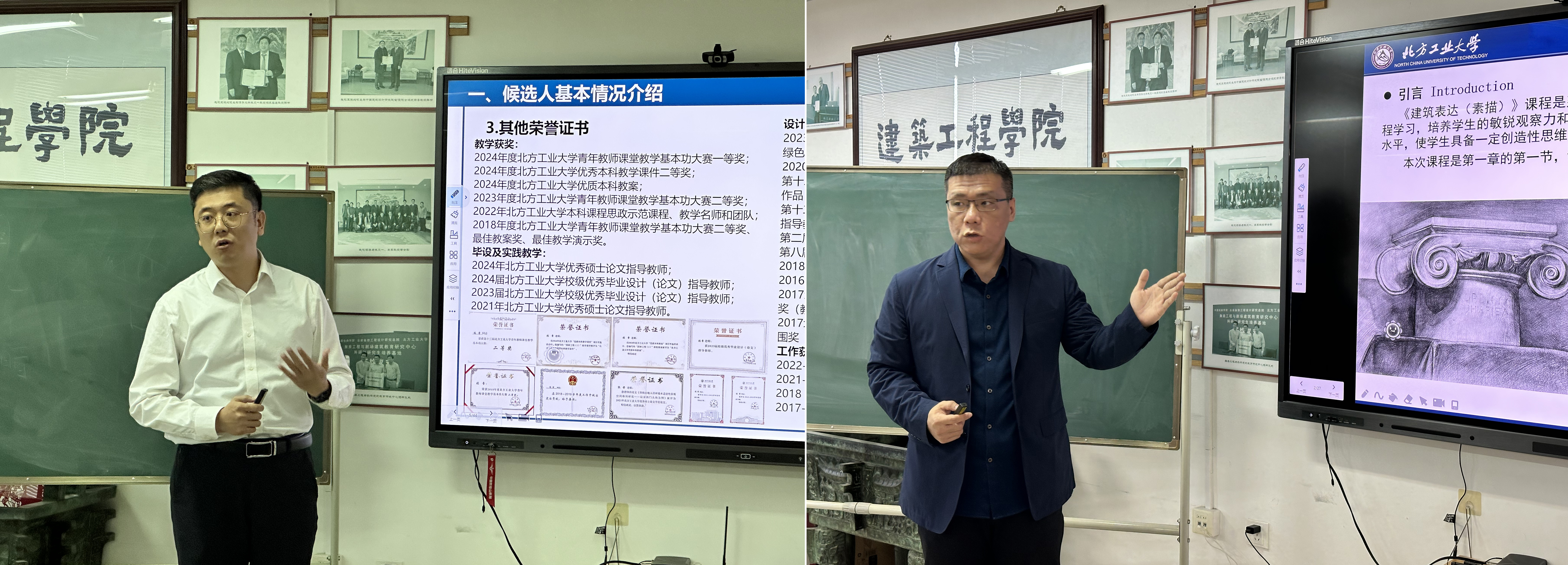 经过教师个人申报、公司审核,共有2名青年教师进入公司推荐评审环节。会上,参评教师从个人申报情况及主讲课程教学演示两方面进行了全面展示。全体评委对参评教师的申报材料、教学演示给予了肯定并提出了详细的完善意见。北京市教学名师贾东教授从材料撰写、教学设计、教学组织、板书设计等多角度对参评教师给予指导并进行了现场示范。