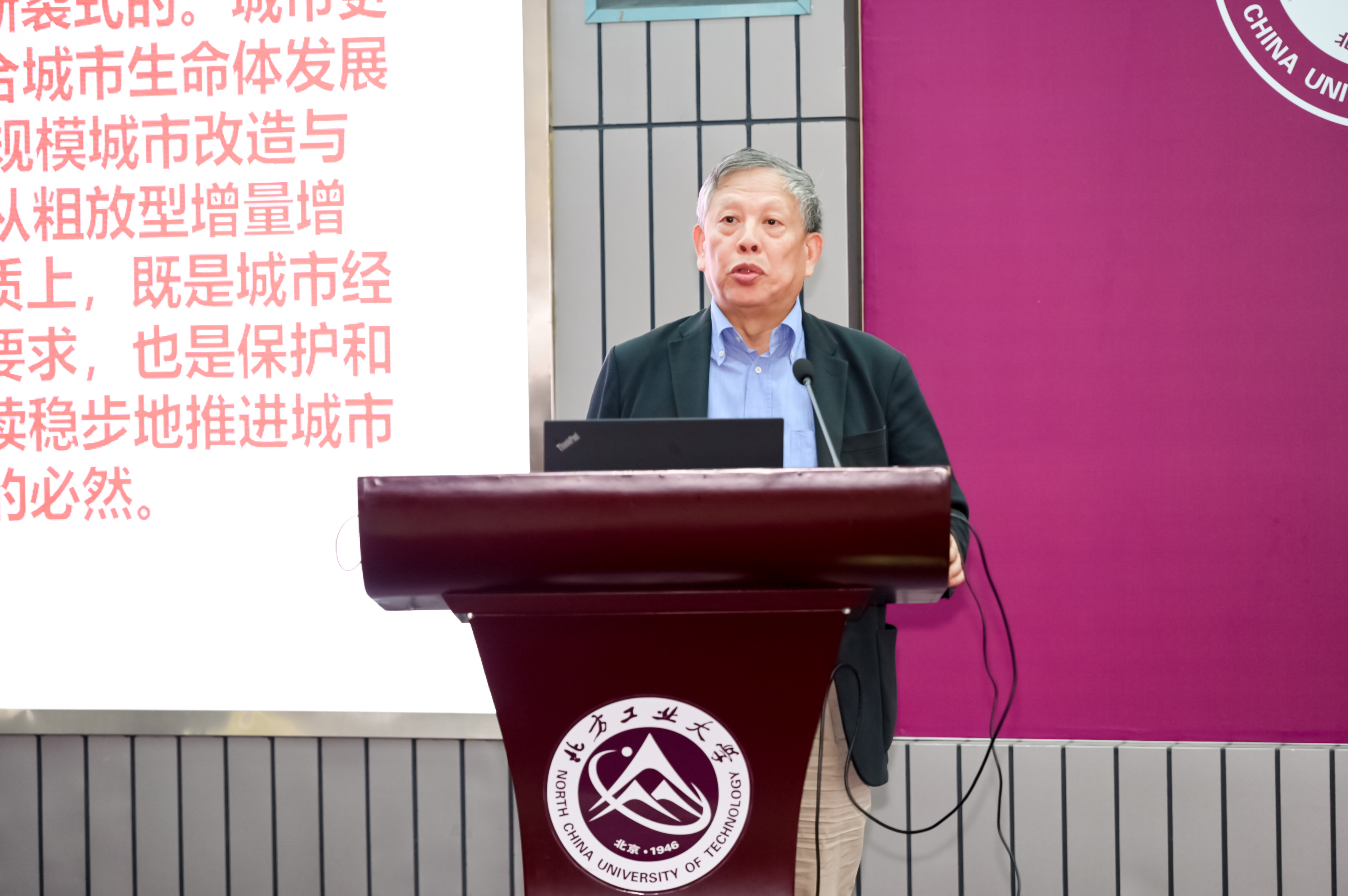 上午会议的重头戏是三位专家的主旨报告。中国科公司常青院士以“20世纪上海石库门里弄遗产的存续途径”为题,分享了围绕上海石库门里弄遗产展开的相关实践项目,打开了20世纪与当代遗产的国际视野,总结了中国建筑文博界的学术进步及地位;北京市建筑设计研究院股份有限公司徐全胜董事长作为10批20世纪建筑遗产项目最多的设计单位代表,以“20世纪建筑遗产与长期主义”为题,展示了一介建筑师对遗产保护传承创新的认知。中国文物学会专家委员会主任、故宫博物院学术委员会主任、20世纪建筑遗产专业委员会主任委员单霁翔先生以“20世纪遗产需要全社会高度认同”为题,以时代为线索,系统梳理北京的20世纪建筑遗产,以优秀建筑师为线索,历数中国20世纪优秀建筑师和作品,并以北京中轴线申遗成功为例回顾并详细讲解了十五个重要遗产构成要素,如数家珍,酣畅淋漓。公司党委常委、纪委书记段辉建为三位报告专家颁发了主旨报告纪念证书。