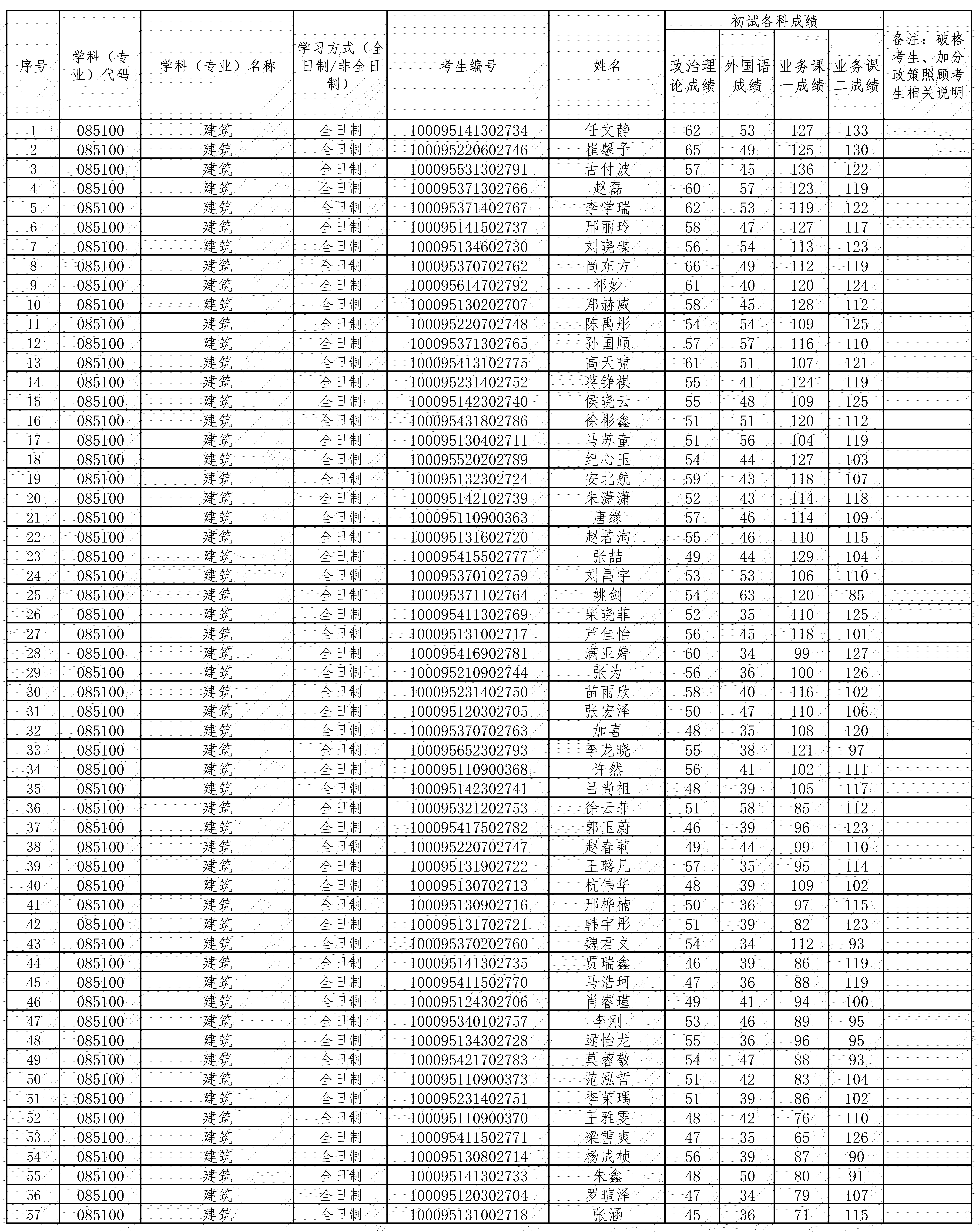 2025年硕士研究生招生考试建筑专硕(085100)第一批次复试考生名单公示