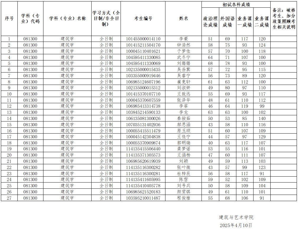 2025年建筑学(081300)第二批次复试考生名单公示(02建筑历史与理论方向)