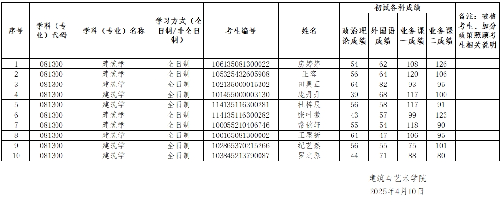 2025年建筑学(081300)第二批次复试考生名单公示(03建筑技术科学方向)