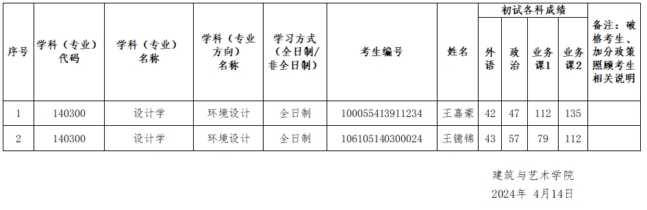 2025年设计学(140300)硕士研究生招生复试考生补充名单公示如下: