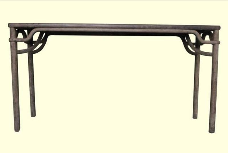 赏与释: 此条案长197厘米,文房书案,大雅文素。这件圆包圆条案配高罗锅枨裹圆腿,内角设榉木霸王枨,正是这个榉木霸王枨构件道出它的出生地在苏州一带,因为它与内蒙古赤峰三眼井元墓壁画中的圆包圆条案相近似,使我首次向学界披露并坚信元代家具对于明代家具的影响案例,此为明证。